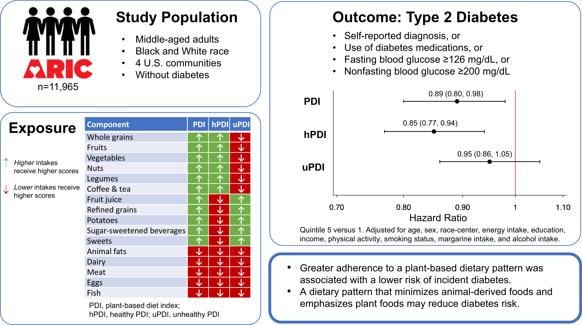 Καταγράφηκαν 2.058 περιστατικά ΣΔ σε 622.080 ανθρωποέτη παρακολούθησης. Σε σύγκριση με τη διάρκεια ύπνου για SD < 30 λεπτά, το HR (95% CI) ήταν 1,15 (0,99, 1,33) για 31–45 λεπτά, 1,28 (1,10, 1,48) για 46–60 λεπτά, 1,54 (1,32, 1,80) για 61-90 λεπτά, και για >90 λεπτά, 1,59 (1,33, 1,90) μετά από προσαρμογή για την ηλικία, το φύλο και τη φυλή.
