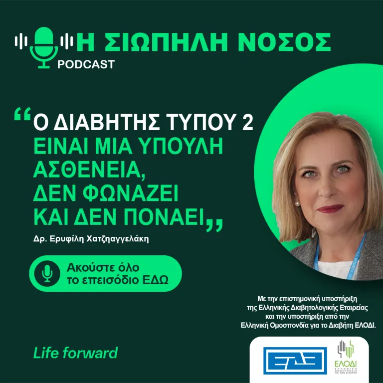 Στο πρώτο επεισόδιο του νέου Podcast «Η Σιωπηλή Νόσος. Ένα Podcast για το Διαβήτη Τύπου 2», που κυκλοφόρησε σήμερα με αφορμή την Παγκόσμια Ημέρα Υγείας, ο Μιχάλης Κεφαλογιάννης υποδέχεται την Δρ. Ερυφίλη Χατζηαγγελάκη, Ομότιμη Καθηγήτρια Παθολογίας και Μεταβολικών Νοσημάτων ΕΚΠΑ.